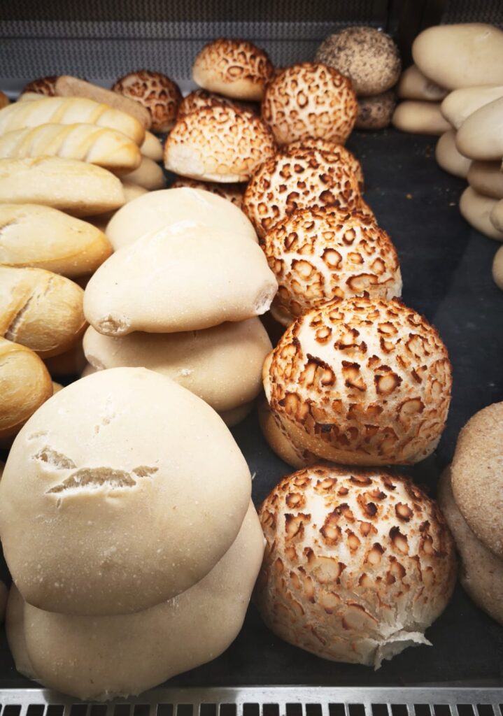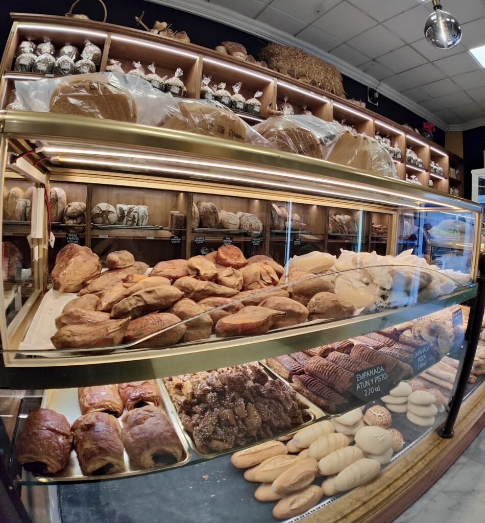 Carlos de Arcos y su equipo sorprenden con panes que se salen de los cauces clásicos. En Canela y Trigo hemos encontrado panes con: rulo de cabra y cebolla caramelizada, roquefort y nueces, chía y cúrcuma, tomate, Nutella y… la gran sorpresa, manteca “colorá” con chicharrones gaditanos.