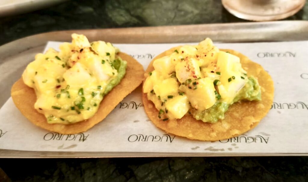 Los taquitos de pez mantequilla se encargan de canalizar esa oleada de alegrías caribeñas. Ponen la untuosidad y la calma, prolongando la satisfacción de la persona sentada a la mesa. Imprescindibles en tu visita a a Augurio.