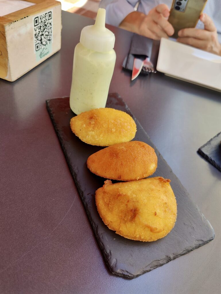 Las cachapas, tortas de maíz rellenas de ternera y queso latino, un queso fresco con un punto de sal, 8,90 euros; las empanadas, siempre hermanadas con las “empanadillas” de este lado del Atlántico, aunque más jugosas, también 8,90 euros; los tostones playeros, elaborados con plátano macho, 7,90 euros; y las arepas reinas, 8,50 euros, han protagonizado un menú desenfadado, un verdadero vendaval de optimismo.