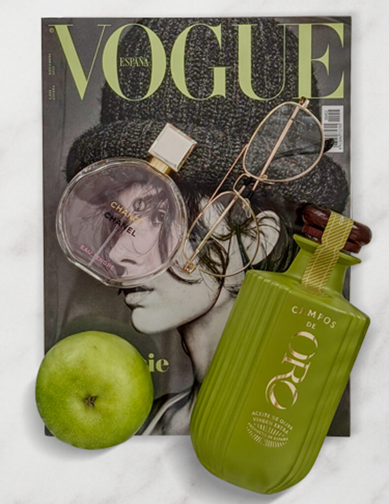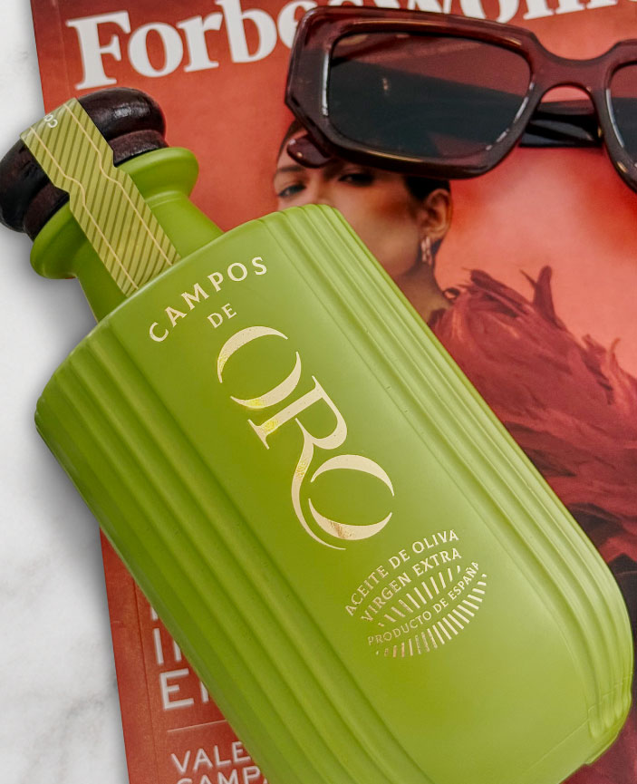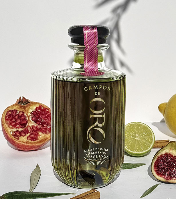 Los impulsores de Campos de Oro, Paula Varela y Alfonso, llevan el paralelismo entre el Crisol Obra Maestra y el mejor perfume hasta el envase singular de sus aceites, que conjugan los tonos inconfundibles del olivar con los brillos del oro. Se resalta así el valor de un aceite singular, elaborado a partir de variedades tan emblemáticas en territorio cordobés como: Hojiblanca y Picuda.