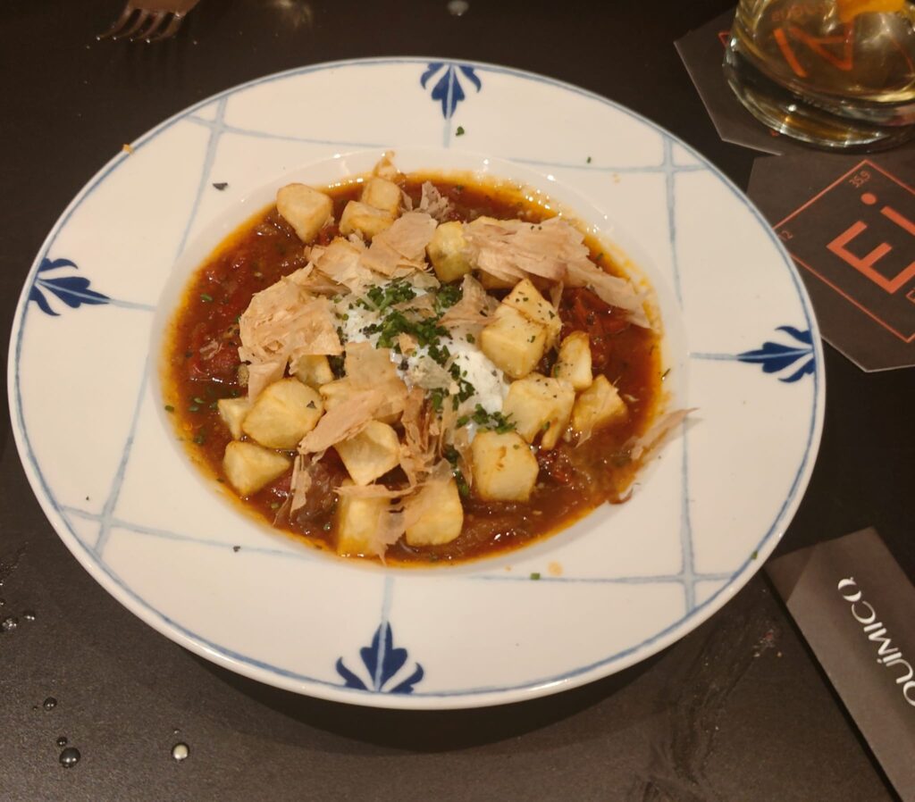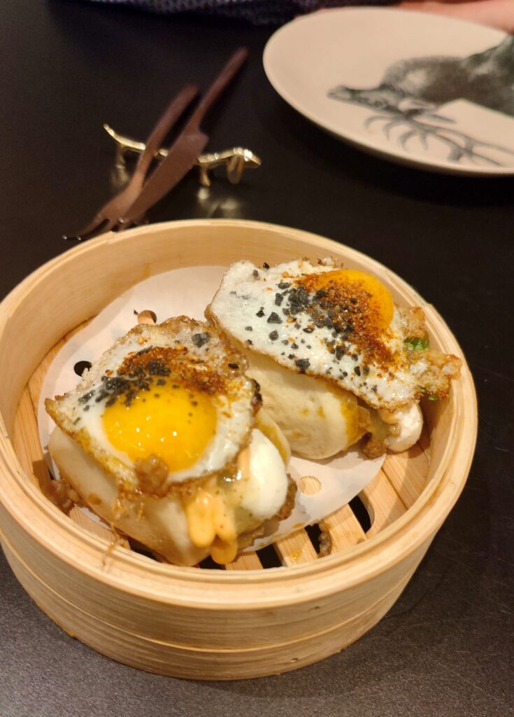 El apartado Prueba lo hemos atravesado con un pan vapor relleno de guiso marinero de papada ibérica, hierbas ibéricas y ricota, bien coronado por un par de huevos fritos super jugosos de… toda la vida. 8,00 euros para 2 unidades que animan a pedir otras 2, otras 2… un escándalo de emociones gratificantes en el paladar.