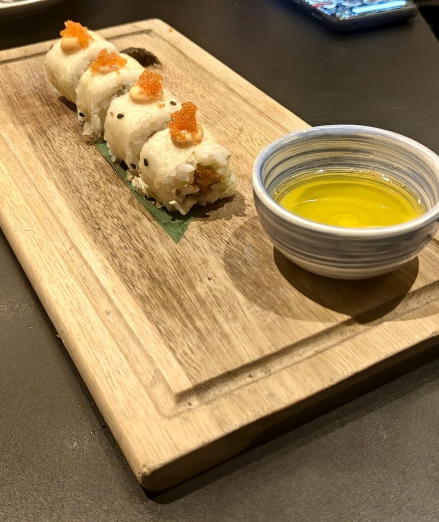 Una locura, sí, es lo que tiene la mejor fusión, la que se elabora sin fronteras. El sushi roll de txangurro de Alquímico reúne un emblema de la cocina vasca con lo mejor de Japón. Para comenzar.