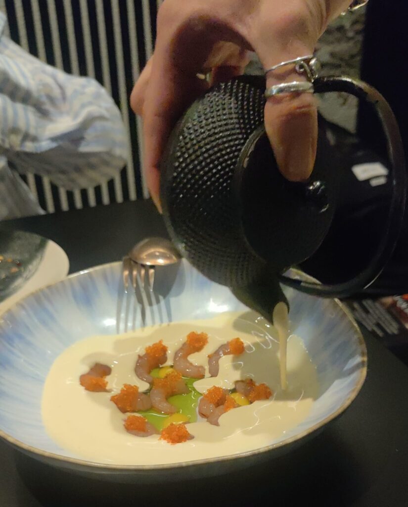 Qué se pare el mundo ahora mismo. Estas han sido nuestras primeras palabras tras llevar la cucharada inicial de gamba roja y bullabesa a nuestra boca. Esta propuesta de Alquímico es de otra galaxia, sí, como ese cometa – satélite – nave espacial que intriga a los astrólogos del mundo desde hace días.