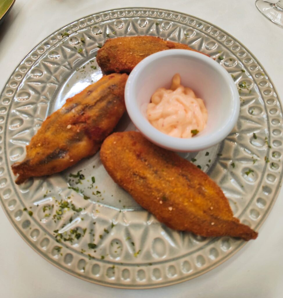 Los boquerones rellenos nos han puesto de acuerdo desde el bocado inicial. Fritos de un modo magistral, sin el menor rastro de aceite en el plato, y con un relleno capaz de añadir el sabor de la verdura a unos pescados que atesoran toda la esencia del mar.