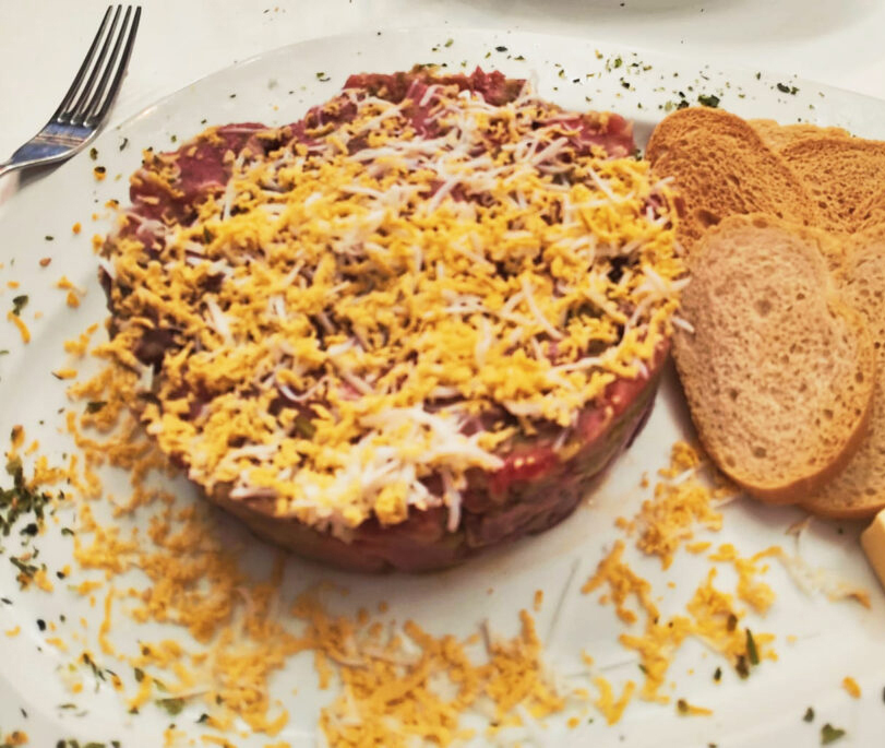 Podemos añadir que la carne retinta de este steak tartar se sitúa en la cumbre de las carnes de España y de muchas otras de procedencia exótica. Transmite vitalidad.