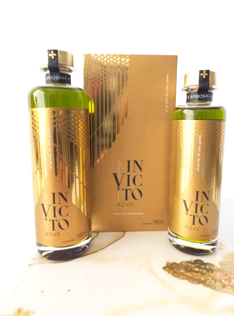 El estudio jienense responsable del diseño de Invicto ha materializado, el valor del mejor aceite como “Oro Líquido”, el regalo de la Naturaleza al mundo gourmet cuando llega el otoño.