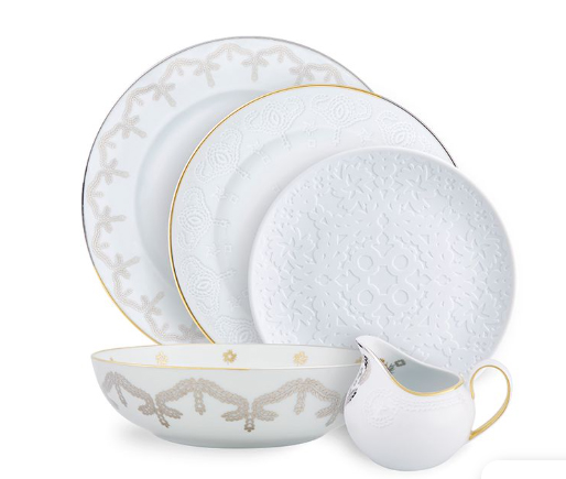 En Paseo Bajo, Christian Lacroix recuerda a anteriores colaboraciones y juega con los distintos relieves en esta ocasión esmaltados en blanco y biscuit.