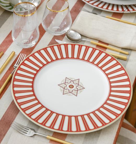 El tercer invitado de Vista Alegre es Stella llano donde destaca el contraste entre el blanco y el rojo. La estrella resplandeciente, elemento central, guiará las mejores celebraciones y reuniones familiares. Esta pieza, y la colección Stella en si misma, se trata de una una mirada contemporánea, al histórico plato Francez de Vista Alegre, producido entre 1881 y 1921.