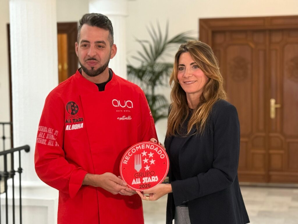 La placa roja se entregó durante el evento celebrado en el Ayuntamiento de Mijas, en el que la Alcaldesa, Ana Mata, felicitó a los chefs mijeños que acaban de recibir la chaquetilla roja de All Stars 10 años en la reciente Edición del Salón profesional de la hostelería, H&T, en Málaga. Dicha chaquetilla se entregó además de a Fran Peinado y Lupe Rodríguez, a Esteban Sedeño de Confusion en Mijas Pueblo y la Cala de Mijas; Salvio Cantone de La Catedral de Las Lagunas y Mathew Lee de Eskina en La Cala. Chaquetilla roja que es emblema de sostenibilidad en la hostelería y desarrollada con la firma de agua filtrada AUA. Estos tres chefs ya recibieron la placa roja de recomendados a finales del año pasado.