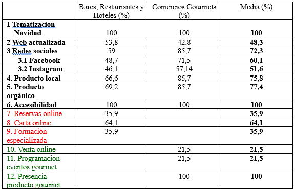 Por lo que respecta al análisis de los comercios gourmets: