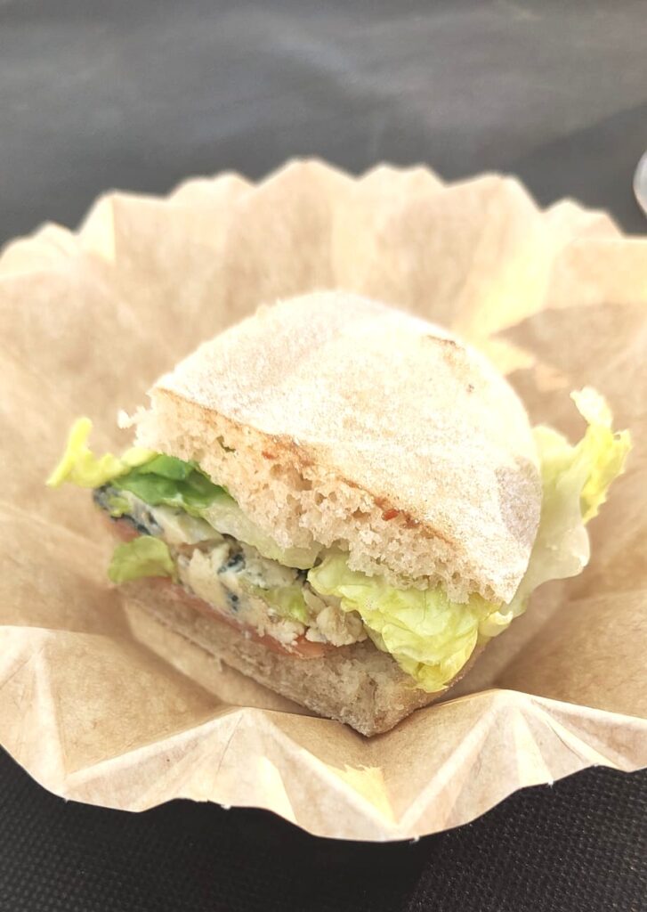 Aldamira también presentó un segundo mollete, en ese caso uno integral, elaborado con harina panadera y con harina de Recio Ronda, con salmón ahumado, queso roquefort y lechuga.
