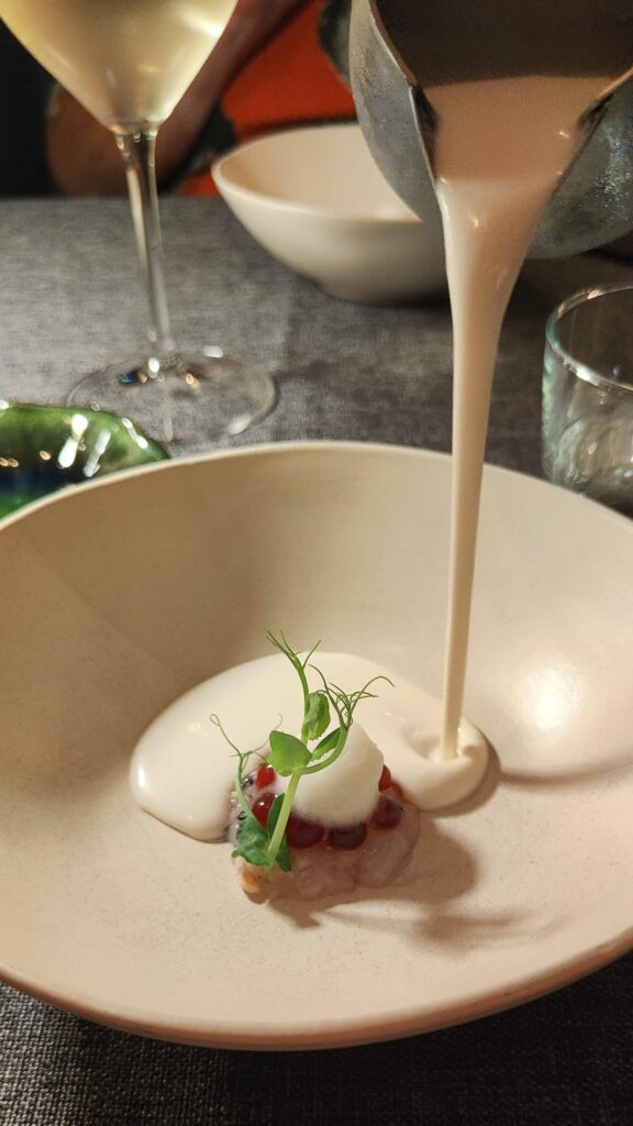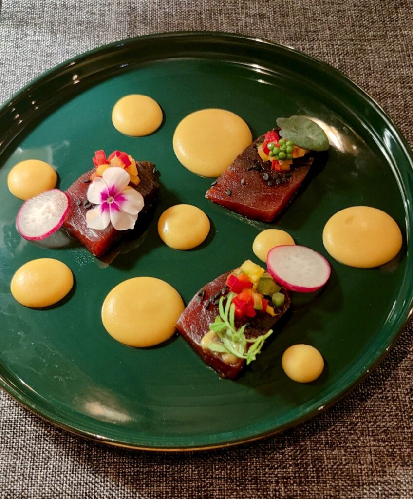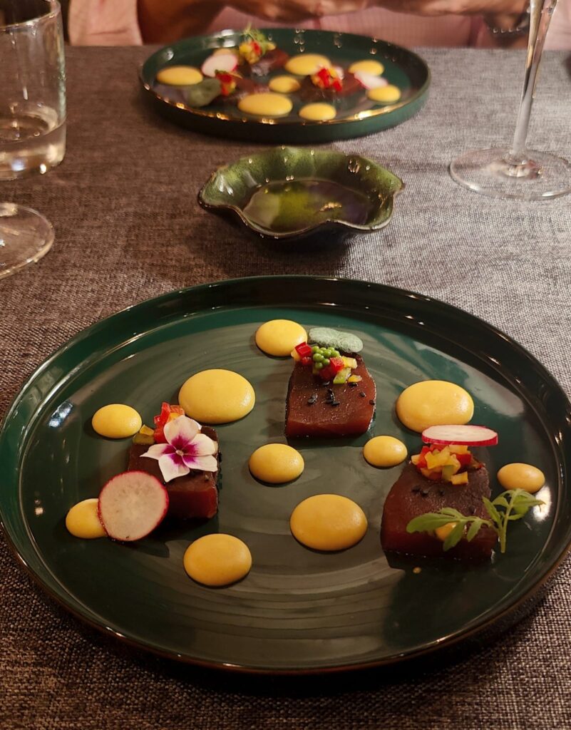 La sinfonía de José Antonio Moyano es una fiesta. El paladar va sumando detalles poderosos que respetan, eso sí, el atún rojo y todos sus distintivos. Soberbio. Me atrevo a decir que es uno de los 5 mejores platos de atún de 2025 en todo el país.