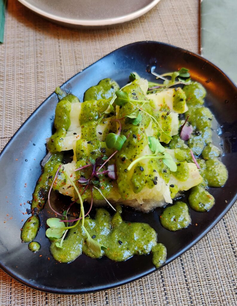 Una yuca sancochada con guasacaca, sí, estáis leyendo bien, ha sido la pieza de entrada, 5,90 euros. Vegetal y potente, el revitalizador perfecto para un día agitado en el centro de la ciudad.
