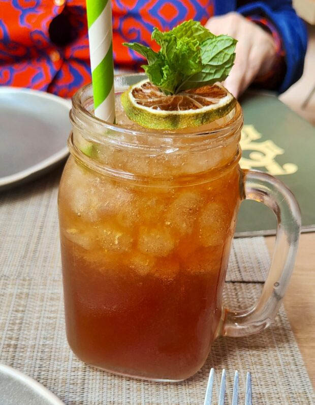 El plato estelar: arepa cabimera, una especie de hamburguesa con toda la guarnición vegetal imaginable, bien “dinamitada” con esas salsas brutales atesoradas en las cocinas venezolanas. 15,00 euros. Luego os cuento los distintivos de la arepa típica de la ciudad de Cabimas, pero adelanto que es una bomba de sabores estimulantes. Genial.