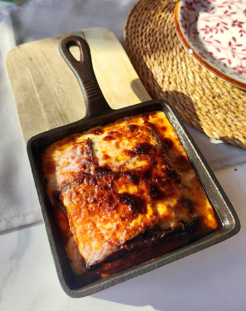 Mediterraneidad total desde que recibes la primera oleada de aromas en tu nariz. Así se presenta la parmigiana di melanzana: tomate, albahaca, la berenjena más sutil que puedas imaginar, y los quesos, mozarella y parmesano, ingredientes que te transportan a esa Italia gourmet siempre referente mundial. Aquí tienes una de las razones de esa posición.