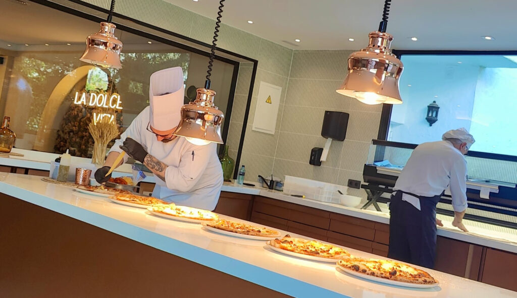 Su horno de elaborar pizzas, protagonista del rincón más noble de la cocina de La Dolce Vita, adelanta el nivel de autenticidad de un restaurante italiano hasta el último detalle.
