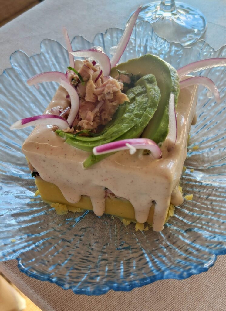 Para redondear este mini viaje por Perú nada mejor que 2 productos bien conocidos en América del Sur desde siempre: patata y aguacate. La unión de ambos ingredientes supera, por mucho, los productos de partida. Es la causa limeña, que hemos degustado con un toque de atún bueno, pero sin pretensiones… ni falta que hace.